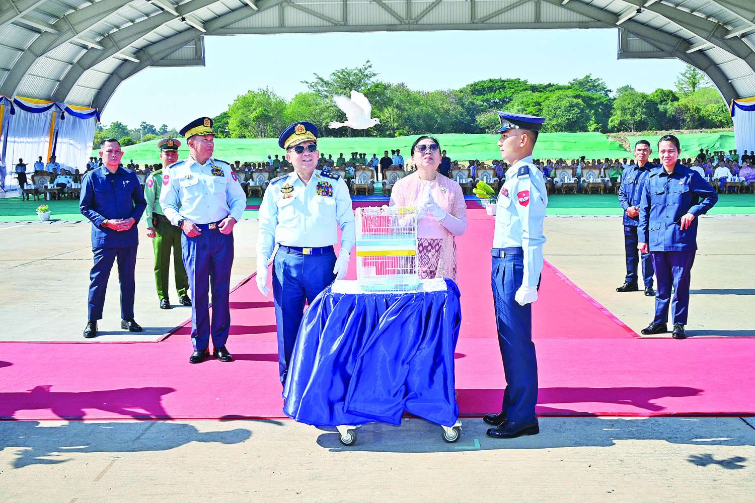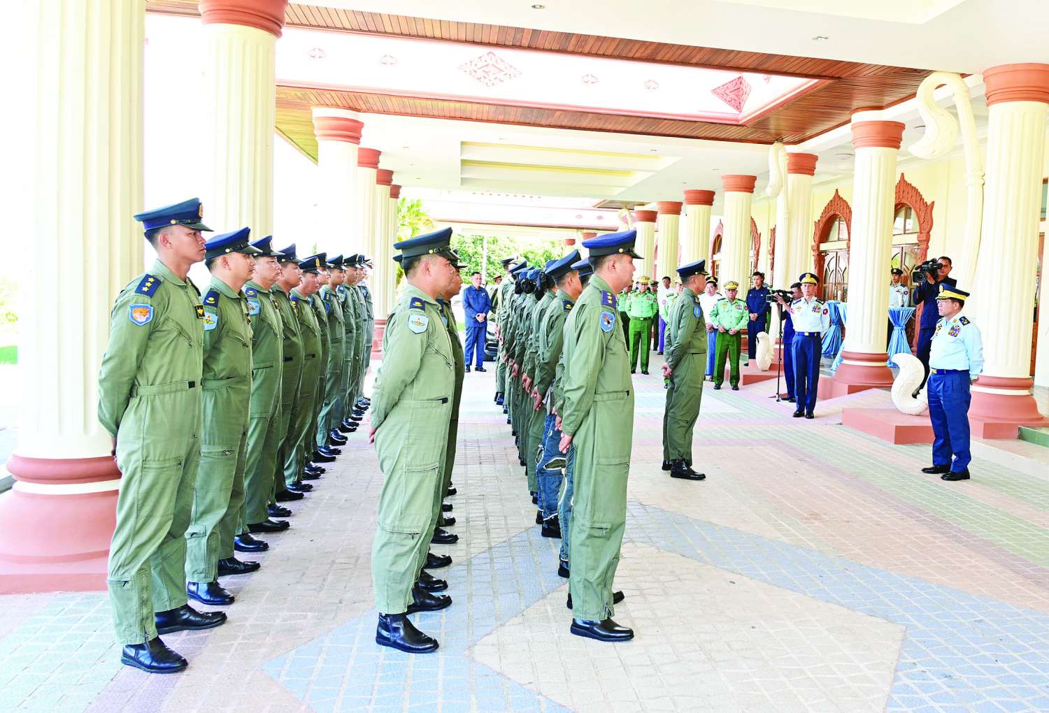 ပြည်ထောင်စုသမ္မတမြန်မာနိုင်ငံတော်၊ တပ်မတော် (လေ) ဖွဲ့စည်းတည်ထောင်မှု (၇၈) နှစ်မြောက် နှစ်ပတ်လည်နေ့ အခမ်းအနားကို ယနေ့နံနက်ပိုင်းတွင် နေပြည်တော်လေတပ်စခန်းဌာနချုပ်၌ ကျင်းပပြုလုပ်ရာ နိုင်ငံတော်လုံခြုံရေးနှင့် အေးချမ်းသာယာရေးကော်မရှင်ဥက္ကဋ္ဌ တပ်မတော်ကာကွယ်ရေးဦးစီးချုပ် ဗိုလ်ချုပ်မှူးကြီး မင်းအောင်လှိုင် တက်ရောက်ချီးမြှင့်သည်။