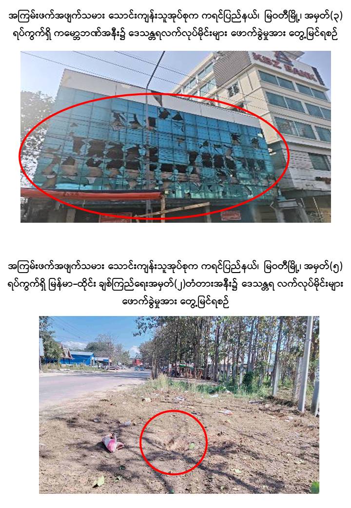 ထို့သို့လုပ်ဆောင်ခဲ့ကြရာ အကြမ်းဖက်အဖျက်သမားသောင်းကျန်းသူအုပ်စုများအနေဖြင့် ပါတီစုံဒီမိုကရေစီအထွေထွေရွေးကောက်ပွဲအပိုင်း (၁) ကျင်းပခဲ့သည့် ဒီဇင်ဘာ ၂၈ ရက်နေ့၌ ကချင်ပြည်နယ်၊ မြစ်ကြီးနားမြို့၊ ရွှေညောင်ပင်ရပ်ကွက်၊ အမှတ် (၁၁) အခြေခံ ပညာအထက်တန်းကျောင်းရှိ မဲရုံအမှတ် (၈၂) ၌ လက်လုပ်အသံမိုင်းဖောက်ခွဲခြင်း၊ ကယားပြည်နယ်၊ လွိုင်ကော်မြို့၊ ရွှေတောင်ရပ်ကွက်နှင့် မင်္ဂလာရပ်ကွက်အတွင်းသို့ ၁၀၇ မမ လက်လုပ်ဗုံးသီးများဖြင့် ပစ်ခတ်တိုက်ခိုက်ခြင်း၊ ကရင်ပြည်နယ်၊ မြဝတီမြို့၊ အမှတ် (၃) ရပ်ကွက်ရှိ ကမ္ဘောဇဘဏ်အနီးနှင့် အမှတ် (၅) ရပ်ကွက်ရှိ မြန်မာ-ထိုင်း ချစ်ကြည်ရေး အမှတ် (၂) တံတားအနီးတို့၌ ဒေသန္တရလက်လုပ်မိုင်းများ ဖောက်ခွဲခြင်း၊ တနင်္သာရီတိုင်းဒေသကြီးအစိုးရအဖွဲ့ရုံးအား Fixed Wing ဖြင့် ပစ်ခတ်ခြင်း၊ ခမောက်ကြီးမြို့၊ အောင်ချမ်းသာကျေးရွာအုပ်စု၊ ယုဇနဆီအုန်းကုမ္ပဏီ၊ မာရမ်းပျိုးခြံမှ ဆန္ဒမဲပေးရန် မဲရုံသို့ သွားရောက်သည့် ဆီအုန်းခြံလုပ်သား ၁၇၀ ဦးအား တားဆီးခြင်း၊ စစ်ကိုင်းတိုင်းဒေသကြီး၊ ရွှေဘိုမြို့၊ အမှတ် (၃) ရပ်ကွက်ရှိ မဲရုံအမှတ် (၂) အနီးသို့ Drop Bomb ချတိုက်ခိုက်ခြင်း၊ စစ်ကိုင်းမြို့၊ တိုင်းရင်းသားလူငယ်များစွမ်းရည်ဖွံ့ဖြိုးရေးဒီဂရီကောလိပ်သို့ လက်လုပ်ရှော့တိုက်ဒုံး (၆) လုံးဖြင့် ပစ်ခတ်တိုက်ခိုက်ခြင်း၊ တမူးမြို့၊ စော်ဘွား (၁) ရပ်ကွက်၊ အမှတ် (၂) အခြေခံပညာအထက်တန်းကျောင်းရှိ မဲရုံအမှတ် (၃) အနီးသို့ Drop Bomb ချတိုက်ခိုက်ခြင်း၊ ကသာမြို့မြောက်ဖက်နှင့် တောင်ဖက်မှ လက်နက်ငယ်၊ လက်နက်ကြီးများဖြင့် နှောင့်ယှက်ပစ်ခတ်ခြင်း၊ မန္တလေးတိုင်းဒေသကြီး၊ မတ္တရာမြို့နယ်၊ နန်းတော်ကျွန်းကျေးရွာအတွင်းနှင့် အောင်မြေသာဇံမြို့နယ်အတွင်းတို့သို့ ၁၀၇ မမ ရှော့တိုက်ဒုံးများဖြင့် ပစ်ခတ်တိုက်ခိုက်ခြင်း၊ မြင်းခြံမြို့ ထွေ/အုပ်ရုံးအနီး၊ တရားရုံးအနီးနှင့် ဗဟိုအကျဉ်းထောင်ကြားလမ်းအနီးတို့သို့ Drop Bomb ချတိုက်ခိုက်ခြင်း၊ ညောင်ဦးမြို့နယ်၊ ဇုန်အမှတ် (၉)၊ မဲရုံအမှတ် (၆၄)၊ အခြေခံ ပညာမူလတန်းကျောင်း (ပြွန်) စာသင်ကျောင်းအနီးသို့ လက်နက်ငယ်များဖြင့် လာရောက်နှောက်ယှက်ပစ်ခတ်တိုက်ခိုက်ခြင်းစသည့် အကြမ်းဖက်အဖျက်အမှောင့်လုပ်ရပ်များကို ဒီဇင်ဘာလ ၂၇ ရက်နေ့ ညနေမှ ၂၈ ရက်နေ့ ညနေပိုင်းအထိ အပိုင်း (၁) မဲဆန္ဒနယ် (၁၀၂) မြို့နယ်အနက် မြို့နယ် (၁၁) ခုတို့၌ နှောင့်ယှက်မှုများ ပြုလုပ်ခဲ့ကြရာ ပြည်သူ ၅ ဦးခန့်သာ အနည်းငယ်ထိခိုက်ဒဏ်ရာရမှုဖြစ်ပွားခဲ့သော်လည်း လွတ်လပ်၍ တရားမျှတပြီး ဂုဏ်သိက္ခာရှိသည့် ပါတီစုံဒီမိုကရေစီအထွေထွေရွေးကောက်ပွဲသို့ နှောင့်ယှက်ပစ်ခတ်မှုနှင့် ခြိမ်းခြောက်မှုများကြားမှ အပိုင်း (၁) ကျင်းပသည့် (၁၀၂) မြို့နယ်