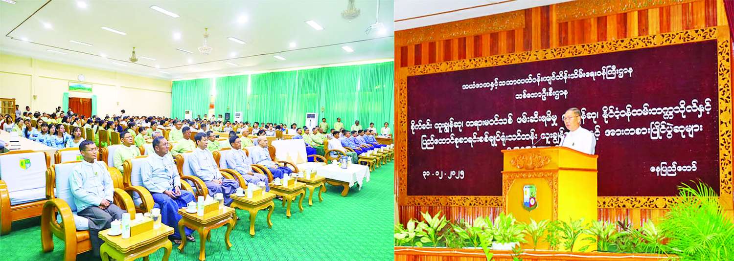 ဦးစွာ ပြည်ထောင်စုဝန်ကြီးက သစ်တောဦးစီး ဌာနအနေဖြင့် ၂၀၂၄ မိုးရာသီတွင် နိုင်ငံပိုင်စီးပွားရေး စိုက်ခင်းဧက ၈၁၆၀ အပါအဝင် သစ်တောစိုက်ခင်း စုစုပေါင်း ၁၃၉၈၆ ဧကကို တည်ထောင်စိုက်ပျိုးခဲ့ပါကြောင်း၊ ဝန်ထမ်းများ၏ လုပ်ငန်းကျွမ်းကျင်မှုနှင့် ကြိုးစားအားထုတ်မှုရှိမှသာ စိုက်ခင်းလုပ်ငန်းစဉ်များ အချိန်မီပြီးစီးပြီး အောင်မြင်သောသစ်တောစိုက်ခင်းများ ဖြစ်လာမည်ဖြစ်ကြောင်း၊ အလားတူသစ်တော သယံဇာတများ ထာဝစဉ်တည်တံ့စေရန်နှင့် သစ်နှင့် သစ်တောထွက်ပစ္စည်းများ တရားမဝင်ထုတ်လုပ်မှုလျော့နည်းပပျောက်စေရေးအတွက် နည်းလမ်းရှစ်သွယ်ဖြင့် ဆောင်ရွက်လျက်ရှိရာ ၂၀၂၅ ခုနှစ် ဇန်နဝါရီမှ ဒီဇင်ဘာ ၂၂ ရက်အထိ တရားမဝင်သစ် ၄၀၈၈ တန် ဖမ်းဆီးရမိခဲ့ကြောင်း၊ သစ်တောစိုက်ခင်းများတည်ထောင်ခြင်းနှင့် တရားမဝင်သစ်ဖမ်းဆီးရေး လုပ်ငန်းများသည် သစ်တောကာကွယ်ထိန်းသိမ်းရေးလုပ်ငန်းတွင် အရေးကြီးသော အခန်းကဏ္ဍဖြစ်သည့်အတွက် အမျိုးသားရေးတာဝန်တစ်ရပ်အနေဖြင့် ဆောင်ရွက်သွားရမည်ဖြစ်ကြောင်း၊ ဝန်ထမ်းများအနေဖြင့် နိုင်ငံ့ဝန်ထမ်းတက္ကသိုလ်များ တက်ရောက်ရာတွင် သတ်မှတ်ထားသော စည်းကမ်းများကို လိုက်နာပြီး ကြိုးစားအားထုတ်သွားရန် တိုက်တွန်းပါကြောင်း ပြောကြားသည်။