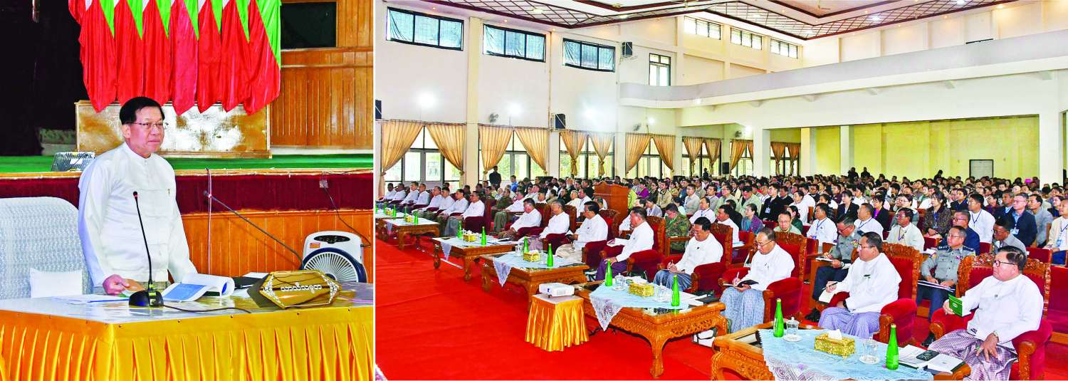 ဦးစွာ ရှမ်းပြည်နယ်ဝန်ကြီးချုပ်က ရှမ်းပြည်နယ်(အရှေ့ပိုင်း)ဒေသဆိုင်ရာအချက်အလက်များ၊ စိုက်ပျိုးရေးမွေးမြူရေးလုပ်ငန်းများဆောင်ရွက်လျက်ရှိမှုနှင့်ဒေသဝမ်းစာဖူလုံမှုအခြေအနေများ၊ သီးနှံများစိုက်ပျိုးရာတွင် တစ်ဧကပန်းတိုင်ရည်မှန်းချက်အထွက် နှုန်းများအတိုင်းထွက်ရှိစေရေး ကြိုးပမ်းဆောင်ရွက်လျက်ရှိမှု၊ ဆီထွက်သီးနှံများ စိုက်ပျိုးထုတ်လုပ်လျက်ရှိမှုနှင့် တိုးတက်စိုက်ပျိုး ထုတ်လုပ်နိုင်ရေးဆောင်ရွက်လျက်ရှိမှု၊ တောင်သူများအားအသိပညာပေးခြင်းများဆောင်ရွက်လျက်ရှိမှုနှင့် မျိုးစေ့နှင့်ဓာတ်မြေဩဇာများထောက်ပံ့ပေးအပ်ခဲ့မှု၊ ကော်ဖီ၊ လက်ဖက်၊ ရာဘာများ တိုးတက်စိုက်ပျိုးထုတ်လုပ်နိုင်မှု၊ သီးထပ်များစိုက်ပျိုးနိုင်ရေးဆောင်ရွက်လျက်ရှိမှု၊ ကုန်းမြင့်လယ်ယာမြေများ ဖော်ထုတ်ပေးနိုင်မှု၊ မွေးမြူရေးလုပ်ငန်းများဆောင်ရွက်လျက်ရှိမှုနှင့် တိရစ္ဆာန်အစာများအား ဒေသထွက်စိုက်ပျိုးရေးထွက်ကုန်ကြမ်းများဖြင့် ထုတ်လုပ်၍ ဖြန့်ဖြူးရောင်းချပေးလျက်ရှိမှု၊ နိုင်ငံ့စီးပွားမြှင့်တင်ရေးရန်ပုံငွေများ ထုတ်ချေးပေးထားမှု၊ MSME လုပ်ငန်းများဖွံ့ဖြိုးတိုးတက်ရေးအတွက် ဆောင်ရွက်လျက်ရှိမှု၊ တရားမဝင်ကုန်သွယ်မှုများ မပြုလုပ်စေရေးကြပ်မတ်ဆောင်ရွက်လျက်ရှိမှု၊ ဒေသတွင်းလမ်းပန်းဆက်သွယ်ရေး ကောင်းမွန်စေရေးဘဏ္ဍာနှစ်အလိုက် ဆောင်ရွက်ပေးလျက်ရှိမှု၊ ရေအားလျှပ်စစ်စက်ရုံများမှ လျှပ်စစ်ဓာတ်အားများ ထုတ်လုပ်ဖြန့်ဖြူးပေးလျက်ရှိမှု၊ အကြောင်းအမျိုးမျိုးကြောင့် ယာယီပိတ်ထားရသည့်ကျောင်းများအား ပြန်လည်ဖွင့်လှစ်ပြီး ကျောင်းသား၊ ကျောင်းသူများ ပညာသင်ကြားနိုင်ရေး ဆောင်ရွက်ပေးလျက်ရှိမှုနှင့် ပညာရေးကဏ္ဍဖွံ့ဖြိုးတိုးတက်ရေးဆောင်ရွက်ပေးလျက်ရှိမှု၊ ကျန်းမာရေးကဏ္ဍ၊ အားကစားကဏ္ဍများဖွံ့ဖြိုးတိုးတက်ရေး ဆောင်ရွက်ပေးလျက်ရှိမှု၊ ရွေးကောက်ပွဲအပိုင်း(၁)နှင့်(၂)ကို အောင်မြင်စွာကျင်းပနိုင်ခဲ့မှုနှင့် ရွေးကောက်ပွဲအပိုင်း(၃)ကျင်းပရန် ပြင်ဆင်ဆောင်ရွက်ထားရှိမှုတို့နှင့်ပတ်သက်၍ ရှင်းလင်းတင်ပြသည်။