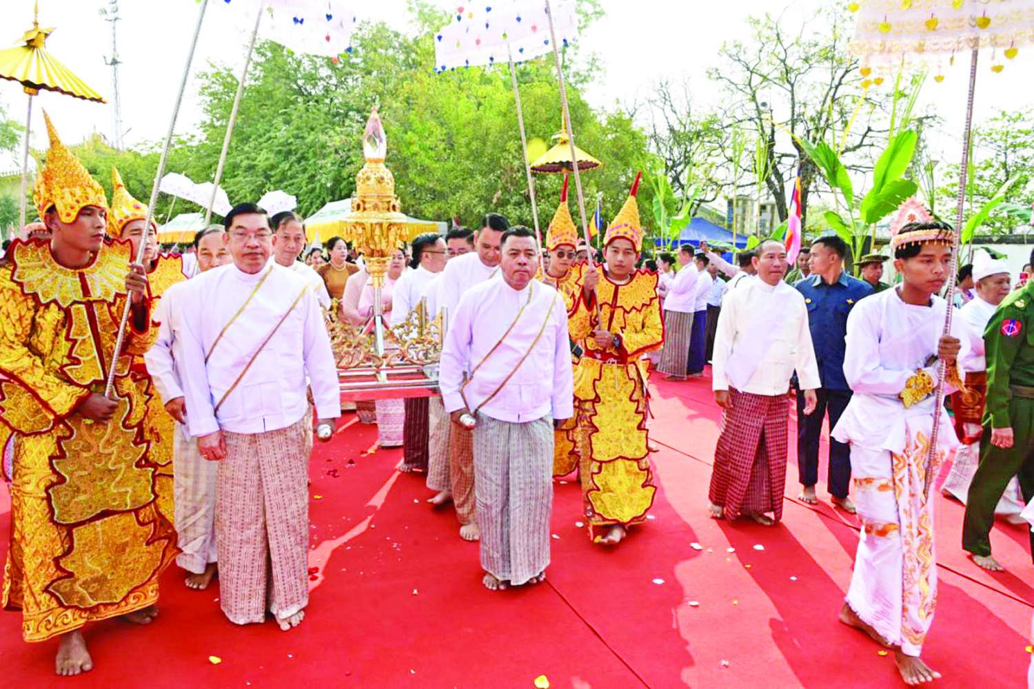 အဆိုပါအခမ်းအနားသို့ နိုင်ငံတော်လုံခြုံရေးနှင့်အေးချမ်းသာယာရေးကော်မရှင်အဖွဲ့ဝင် နိုင်ငံတော်ဝန်ကြီးချုပ် ဦးညိုစောနှင့်ဇနီး၊ ကော်မရှင်အတွင်းရေးမှူး ဗိုလ်ချုပ်ကြီး ရဲဝင်းဦးနှင့်ဇနီး၊ ပြည်ထောင်စုဝန်ကြီးများနှင့်ဇနီးများ၊ စစ်ကိုင်းတိုင်းဒေသကြီးဝန်ကြီးချုပ်၊ မန္တလေးတိုင်းဒေသကြီးဝန်ကြီးချုပ်၊ ကာကွယ်ရေးဦးစီးချုပ်ရုံးမှ အဆင့်မြင့်တပ်မတော်အရာရှိကြီးများနှင့် ဇနီးများ၊ အနောက်မြောက်ပိုင်းတိုင်းစစ်ဌာနချုပ်တိုင်းမှူး၊ အလယ်ပိုင်းတိုင်းစစ်ဌာနချုပ်တိုင်းမှူး၊ ဒုတိယဝန်ကြီးများ၊ ဌာနဆိုင်ရာများ၊ ဖိတ်ကြားထားသည့် ဧည့်သည်တော်များ၊ စေတနာရှင်အလှူရှင်များ၊ ဝတ်အသင်းအဖွဲ့များနှင့် ဒေသခံပြည်သူများ စည်ကားသိုက်မြိုက်စွာ တက်ရောက်ကြည်ညိုကြသည်။