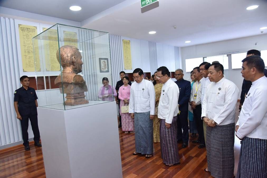 ယင်းနောက် နိုင်ငံတော်ဝန်ကြီးချုပ်နှင့် ဧည့်သည်တော်များသည် အဆောက်အဦအတွင်းပြသထားသည့် စာပေ၊ ဂီတ၊ သဘင်၊ ရုပ်ရှင် အနုသုခုမလက်ရာများနှင့် မှတ်တမ်းဓာတ်ပုံများကို လှည့်လည်ကြည့်ရှုအားပေးကြသည်။