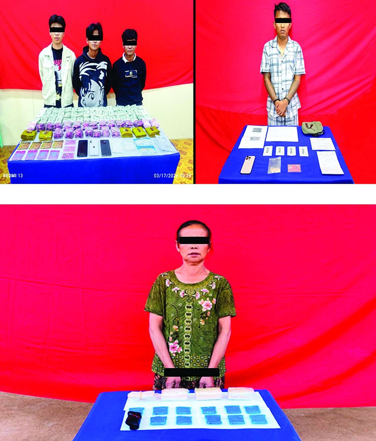 မူးယစ်ဆေးဝါး တားဆီးနှိမ်နင်း ရေးရဲတပ်ဖွဲ့မှ တပ်ဖွဲ့ဝင်များပါဝင်သောပူးပေါင်းအဖွဲ့သည် မတ် ၁၇ ရက် နံနက် ၉ နာရီက သတင်းအရ သာစည်မြို့နယ် ကျွဲတပ်ဆုံကျေးရွာအနီးတွင် YUTONG အမျိုးအစား ခရီးသည်တင်မော်တော်ယာဉ်အား ရပ်တန့်စစ်ဆေးရှာဖွေရာ ယာဉ်ပေါ်တွင်လိုက်ပါလာသည့် ခရီးသည်များဖြစ်သည့် မင်္ဂလာဒုံမြို့နယ်နေ ဝင်းဇော်ဇော် တင် (၄၂) နှစ်၊ လားရှိုးမြို့ မြန်မာခါးရိုးရပ်ကွက်နေ ပိုင်ရဲထွန်း (၂၁) နှစ်နှင့် ဇော်ရှိုင်း (၂၀) နှစ်တို့ သုံးဦး သယ်ဆောင်လာသည့် စိတ်ပြောင်းဆေးဝါးများဖြစ်သည့် HAPPY WATER ၅ ဒသမ ၂၃၅ ကီလို (တစ်ကီလိုလျှင် ငွေကျပ် သိန်း ၁၂၀၀ နှုန်းဖြင့် ငွေကျပ် ၆၂၈၂ သိန်း)၊ ကက်တမင်း ၀ ဒသမ ၂ ကီလို (တစ်ကီလိုလျှင် ငွေကျပ်သိန်း ၃၀၀ နှုန်းဖြင့် ၎င်းဒေသတန်ဖိုး ငွေကျပ်သိန်း ၆၀) တို့အား ဖမ်းဆီးရမိခဲ့သည်။