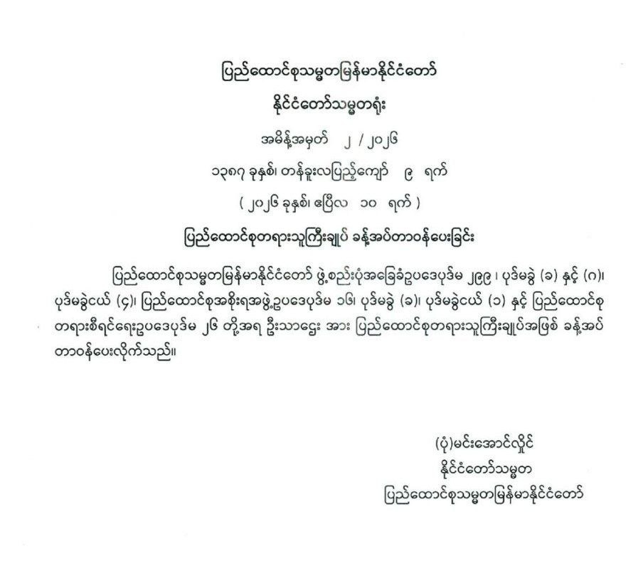 အများပြည်သူသို့ အသိပေးကြေညာချက်
