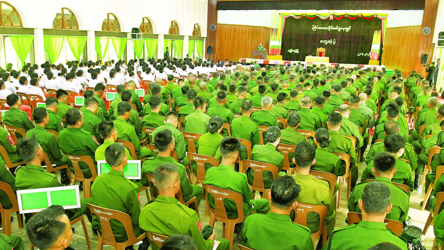 အုပ်ချုပ်ရေးနှင့်ပတ်သက်၍ စစ်ဆင်ရေး၊ လုံခြုံရေးနှင့်လေ့ကျင့်ရေးဆိုင်ရာများ အောင်မြင်ရန် အုပ်ချုပ်ရေးသည် အဓိကကျကြောင်း၊ တပ်မတော်ရုံးလုပ်ငန်းများကို ဦး၊ ရေး၊ ထောက် ထောက်တိုင် ၃ ရပ်ကောင်းမွန်စွာ လည်ပတ်မှုဖြင့် ထိန်းကျောင်းထားကြောင်း၊ စစ်စည်းကမ်းဆိုင်ရာ စည်းမျဉ်း၊ အမိန့်နှင့် ညွှန်ကြားချက်များကို လိုက်နာ၍ ဦး၊ ရေး၊ ထောက်လုပ်ငန်းများကို ဟန်ချက်ညီထိန်းကျောင်းသွားရန်လိုကြောင်း၊ အုပ်ချုပ်ရေးပိုင်းကို ပိုင်နိုင်စွာဆောင်ရွက်နိုင်ခြင်းဖြင့် အရာရှိ၊ စစ်သည်၊ မိသားစုများ၏ သက်သာချောင်ချိမှုကိုလည်း ထိရောက်စွာလုပ်ဆောင်နိုင်မည်ဖြစ်ကြောင်း။