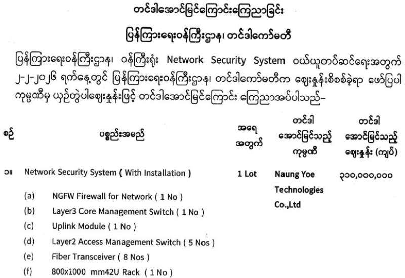 (၇၉)နှစ်မြောက် ပြည်ထောင်စုနေ့ကို ကြိုဆိုဂုဏ်ပြုသောအားဖြင့် ပြည်ထောင်စုအဆင့် MSME ထုတ်ကုန်ပြပွဲနှင့် ဈေးရောင်းပွဲတော် (နေပြည်တော်) ကို နေပြည်တော် ပြည်သူ့ရင်ပြင်၌ ဖေဖော်ဝါရီ ၈ ရက်မှ ၁၃ ရက်အထိ စည်ကားသိုက်မြိုက်စွာ ကျင်းပသွားမည်ဖြစ်သည်၊၊