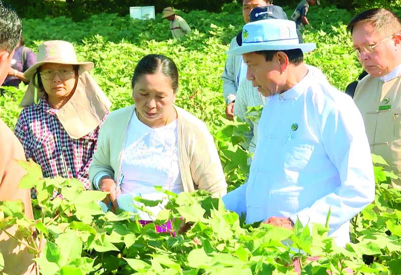 စိုက်ပျိုးရေး၊ မွေးမြူရေးနှင့်ဆည်မြောင်းဝန်ကြီးဌာန ဒုတိယဝန်ကြီး ဒေါက်တာတင်ထွဋ်သည် ယနေ့နံနက်ပိုင်းတွင် နေပြည်တော်ကောင်စီနယ်မြေ စိုက်ပျိုးရေးဦးစီးဌာန မျိုးစေ့ဌာနခွဲ၏ သုတေသနဝင်းအတွင်း၌ စမ်းသပ်စိုက်ပျိုးထားသည့် မိုးနှောင်းဝါမျိုးများ ယှဉ်ပြိုင်စမ်းသပ်ခြင်းသုတေသနစိုက်ကွင်းကို ကြည့်ရှုစစ်ဆေးသည်။