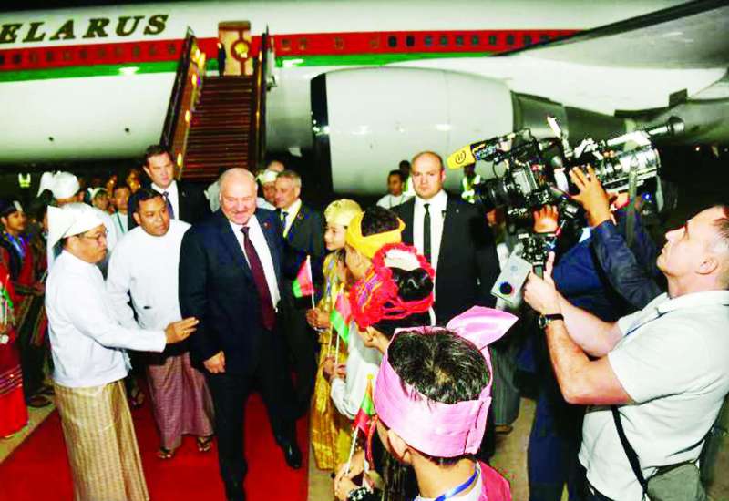ပြည်ထောင်စုသမ္မတမြန်မာနိုင်ငံတော် ယာယီသမ္မတ နိုင်ငံတော်လုံခြုံရေးနှင့်အေးချမ်းသာယာရေးကော်မရှင်ဥက္ကဋ္ဌ ဗိုလ်ချုပ်မှူးကြီးမင်းအောင်လှိုင်၏ ဖိတ်ကြားချက်အရ မြန်မာနိုင်ငံသို့ တရားဝင်ချစ်ကြည်ရေးခရီးလာရောက်သည့် ဘယ်လာရုစ်သမ္မတနိုင်ငံ သမ္မတ H.E. Mr. Alexander Gregory-evich Lukashenko ဦးဆောင်သော အဆင့်မြင့်ကိုယ်စားလှယ်အဖွဲ့လိုက်ပါလာသော အထူးလေယာဉ်သည် ယနေ့ညပိုင်းတွင် မြန်မာနိုင်ငံလေပိုင်နက်အတွင်းသို့ စတင်ဖြတ်သန်းဝင်ရောက်လာရာ မြန်မာ့တပ်မတော်(လေ)မှ စတုတ္ထမျိုးဆက်လွန် Su-30 SME ဘက်စုံသုံး အကြီးစားဂျက်တိုက်လေယာဉ်သုံးစင်းက လိုက်ပါခြံရံပျံသန်းကြိုဆိုခဲ့ပြီး နေပြည်တော် တပ်မတော်လေဆိပ်သို့ ရောက်ရှိဆင်းသက်သည်။