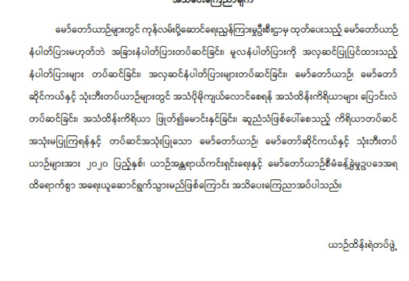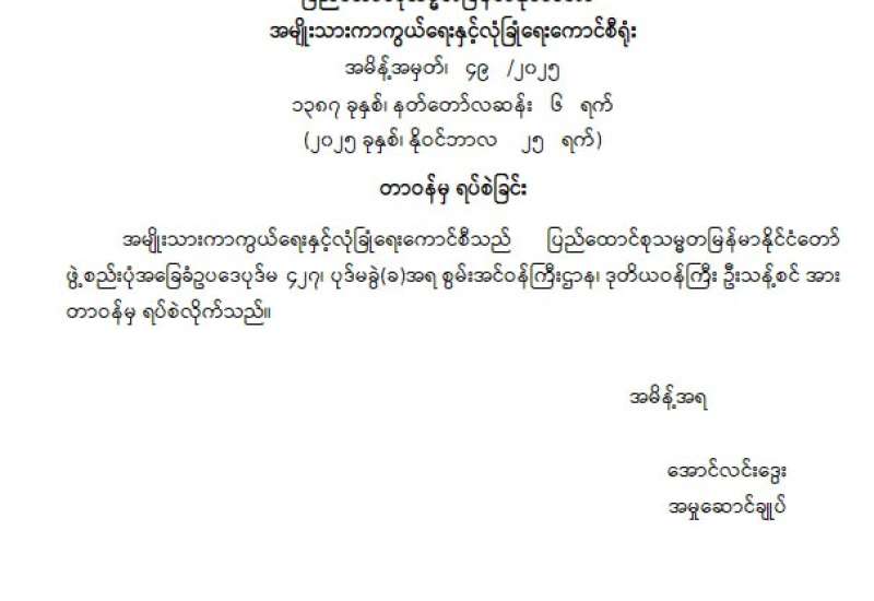 အကြမ်းဖက်အုပ်စုအဖြစ် ကြေညာထားသည့် CRPH ၊ NUG နှင့် ယင်းတို့၏ လက်ဝေခံအဖွဲ့အစည်းများ၊ ယင်းတို့နှင့် ဆက်နွှယ်နေသောအဖွဲ့အစည်းများ၊ လူပုဂ္ဂိုလ်များသည် နိုင်ငံတော်တည်ငြိမ်အေးချမ်းရေးကို ပျက်ပြားစေရန်နှင့် အစိုးရယန္တရားများပျက်ပြားစေရန် ရည်ရွယ်လျက် လှုံ့ဆော်ခြင်း၊ ဝါဒဖြန့်ခြင်းများပြုလုပ်ခဲ့မှုအပေါ် ဥပဒေနှင့်အညီ ထိရောက်စွာ အရေးယူသွားမည်ဖြစ်ကြောင်းနှင့် ထိုသို့ လှုံ့ဆော်သူ၊ ဝါဒဖြန့်သူများအား ဆက်လက်ဖော်ထုတ်အရေးယူသွားမည်ဖြစ်ကြောင်း မိဘပြည်သူများ သိရှိနိုင်ရေး အသိပေးသတင်းထုတ်ပြန်ပြီးဖြစ်သည်။