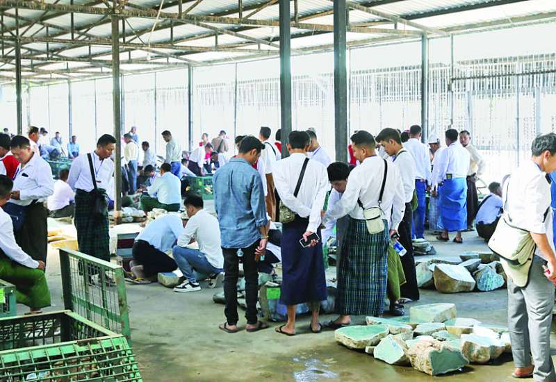 ၂၀၂၅ ခုနှစ် အကြိမ်(၆၀)မြောက် မြန်မာ့ကျောက်မျက်ရတနာပြပွဲ အဋ္ဌမနေ့ကို ယနေ့နံနက်ပိုင်းတွင် နေပြည်တော်ရှိ မဏိရတနာကျောက်စိမ်းခန်းမ၌ ဆက်လက်ကျင်းပရာ နံနက်ပိုင်းမှစတင်၍ ပြည်တွင်း၊ ပြည်ပရတနာကုန်သည်များသည် မဏိရတနာကျောက်စိမ်းခန်းမ အပြင်ဘက်သတ်မှတ်နေရာများအလိုက် ခင်းကျင်းပြသထားသည့် အုပ်စု(စီ)မှ ကျောက်စိမ်းအတွဲများကို စိတ်ကြိုက်လေ့လာကြည့်ရှုကြသည်။