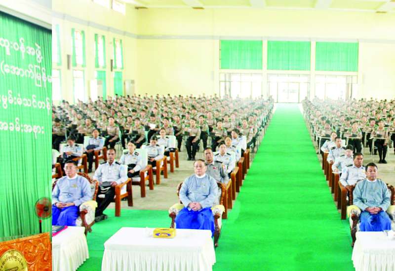 အခြေခံပညာ ဆရာ ဆရာမများ အထူးမွမ်းမံသင်တန်း အမှတ်စဉ်(၁၀၉)၏ သင်တန်းဆင်းပွဲ အခမ်းအနားကို ယနေ့နံနက်ပိုင်းတွင် နိုင်ငံ့ဝန်ထမ်းတက္ကသိုလ် (အောက်မြန်မာပြည်)ရတနာ သိင်္ဃခန်းမ၌ကျင်းပရာ ပြည်ထောင်စုရာထူးဝန်အဖွဲ့ဥက္ကဋ္ဌ ဦးစိုးမင်းဦး၊ အဖွဲ့ဝင်ဦးစိုးတင့်၊ ပြည်ထောင်စု ရာထူးဝန်အဖွဲ့ရုံး ညွှန်ကြားရေးမှူးချုပ်၊ နိုင်ငံ့ဝန်ထမ်းတက္ကသိုလ် (အောက်မြန်မာပြည်)မှ ပါမောက္ခချုပ်၊ ဒုတိယပါမောက္ခချုပ်များနှင့် တာဝန်ရှိသူများ၊ ပညာရေးဝန်ကြီးဌာနမှ တာဝန်ရှိသူများနှင့် သင်တန်းသား သင်တန်းသူများ တက်ရောက်ကြသည်။