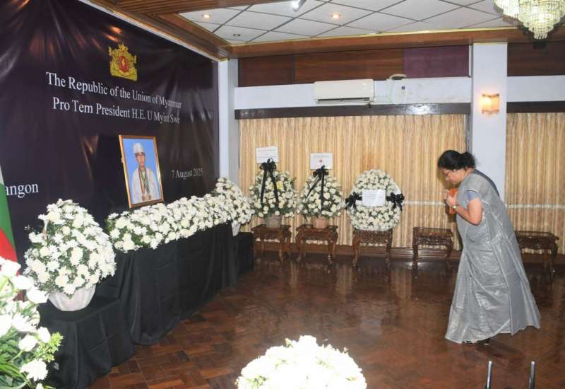 ပြည်ထောင်စုသမ္မတမြန်မာနိုင်ငံတော်၊ ယာယီသမ္မတ ဦးမြင့်ဆွေသည် ၇-၈-၂၀၂၅ ရက်နေ့တွင် ကွယ်လွန်ခဲ့သည့်အတွက် ဝမ်းနည်းကြောင်းမှတ်တမ်းစာအုပ်ကို ရန်ကုန်မြို့၊ စကားဝါလမ်းရှိ နိုင်ငံခြားရေးဝန်ကြီးဌာန၌ ၈-၈-၂၀၂၅ ရက်နေ့မှစတင်၍ ဖွင့်လှစ်ထားရာ မြန်မာနိုင်ငံဆိုင်ရာ သံအမတ်ကြီးများနှင့် သံရုံးအကြီးအကဲများက ဝမ်းနည်းကြောင်း လာရောက်လက်မှတ်ရေးထိုးခဲ့ကြသည်။