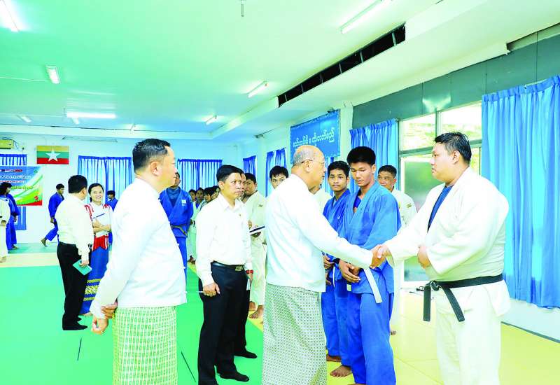 အားကစားနှင့်လူငယ်ရေးရာဝန်ကြီးဌာနနှင့် ဟိုတယ်နှင့်ခရီးသွားလာရေးဝန်ကြီးဌာန ပြည်ထောင်စုဝန်ကြီး Jeng Phang နော်တောင်သည် အားကစားနှင့်လူငယ်ရေးရာဝန်ကြီးဌာန ဒုတိယဝန်ကြီး ဦးဇင်မင်းထက်၊ အားကစားနှင့်ကာယပညာဦးစီးဌာနမှ တာဝန်ရှိသူများနှင့်အတူ ယနေ့နံနက်ပိုင်းတွင် (၃၃)ကြိမ်မြောက် အရှေ့တောင်အာရှအားကစားပြိုင်ပွဲ ဝင်ရောက်ယှဉ်ပြိုင်ရန် နေပြည်တော်၌ ဂျူဒိုနှင့်ပီတန်းအားကစားအဖွဲ့များ စခန်းဝင်လေ့ကျင့်နေမှုကို လှည့်လည်ကြည့်ရှုအားပေးသည်။