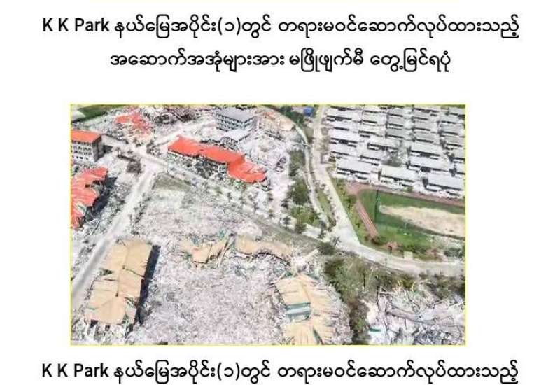 မြန်မာနိုင်ငံအစိုးရအနေဖြင့် နိုင်ငံတကာနှင့် တစ်ကမ္ဘာလုံးကို အန္တရာယ်ပေးနေသည့် online လိမ်လည်မှုများ၊ online လောင်းကစားမှုများ တိုက်ဖျက်ရေးလုပ်ငန်းစဉ်များကို အမျိုးသားရေးတာဝန်တစ်ရပ်အနေဖြင့် အလေးထားတိုက်ဖျက်ဆောင်ရွက်လျက်ရှိပြီး လုံခြုံရေးတပ်ဖွဲ့ဝင်များ၊ အုပ်ချုပ်ရေးအဖွဲ့အစည်းများအပါအဝင် အဖွဲ့စုံပါဝင်သည့် ပူးပေါင်းစစ်ဆင်ရေးအဖွဲ့များသည် Online လိမ်လည်လောင်းကစားမှုများကို အများဆုံးအခြေချလုပ်ကိုင်လျက်ရှိကြသည့် KK Park နယ်မြေအတွင်းရှိ ခွင့်ပြုချက်မရှိဘဲ ဆောက်လုပ်ထားသော တရားမဝင်အဆောက်အအုံများအား ဝင်ရောက်ရှာဖွေရှင်းလင်းခြင်း၊ ဖြိုချဖျက်ဆီးခြင်းများနှင့် ရွှေကုက္ကိုလ်နယ်မြေအတွင်းရှိ Online လောင်းကစားမှုနှင့် လိမ်လည်မှုများ ကျူးလွန်ခဲ့သည့် ပြည်ပနိုင်ငံသားများကို ဖော်ထုတ်ထိန်းသိမ်းခြင်းများကို ဆက်လက်ဆောင်ရွက်လျက်ရှိသည်။