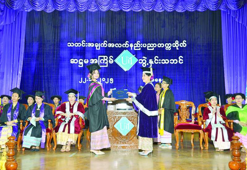 သတင်းအချက်အလက်နည်းပညာတက္ကသိုလ်၏ ဆဋ္ဌမအကြိမ် ဘွဲ့နှင်းသဘင်အခမ်းအနားကို ယနေ့နံနက်ပိုင်းက ရန်ကုန်တက္ကသိုလ်ဘွဲ့နှင်း သဘင်ခန်းမ၌ ကျင်းပသည်။