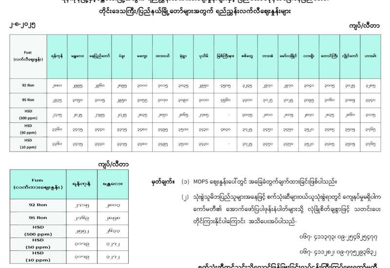 နေပြည်တော် (တပ်ကုန်း) တွင် RCC (၈) ခန်းတွဲ (၃)ထပ် အမှုထမ်းအိမ်ရာ (၁)လုံး တည်ဆောက်ခြင်းအတွက် (၂၉ - ၇ - ၂၀၂၅) ရက်နေ့တွင် ပြန်ကြားရေးဝန်ကြီးဌာန၊ ပြည်တွင်း/ ပြည်ပပစ္စည်းများ ဝယ်ယူရေးနှင့်ထုခွဲရောင်းချရေးကော်မတီမှ ဈေးနှုန်းစိစစ်ခဲ့ရာ ဖော်ပြပါကုမ္ပဏီမှ ယှဉ်တွဲပါဈေးနှုန်းဖြင့် တင်ဒါအောင်မြင်ကြောင်း ကြေညာအပ်ပါသည် -