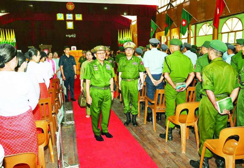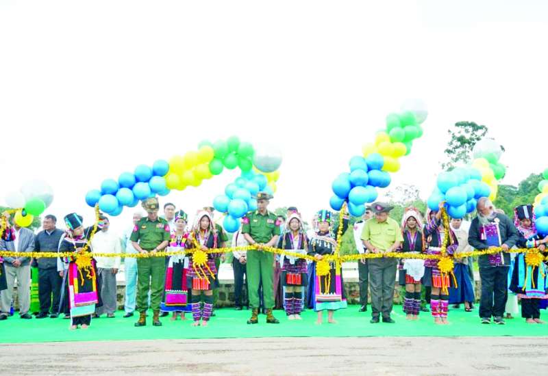 ရှမ်းပြည်နယ်(အရှေ့ပိုင်း) ကျိုင်းတုံမြို့နယ် လွိုင်မွေဒေသ ကျေးရွာလေးရွာ စိမ့်စမ်းရေသွယ်ယူ ခြင်း (၉/၀)မိုင် လုပ်ငန်းဖွင့်ပွဲကို ယနေ့နံနက်ပိုင်းတွင် လွိုင်မွေတောင်စခန်းမြို့ လွိုင်မွေရေကန်ကြီးအနီး၌ ပြုလုပ်ရာ တြိဂံဒေသတိုင်းစစ်ဌာနချုပ်တိုင်းမှူးနှင့် တာဝန်ရှိသူများ၊ ပြည်နယ်၊ ခရိုင်၊ မြို့နယ်အဆင့် ဌာနဆိုင်ရာတာဝန်ရှိသူများ၊ တိုင်းရင်းသားရိုးရာ အဖွဲ့များ၊ ရပ်မိရပ်ဖများနှင့် ဒေသခံပြည်သူများတက်ရောက်ကြသည်။