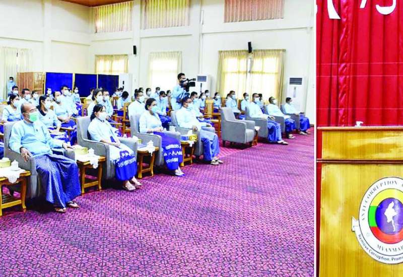 အဂတိလိုက်စားမှုတိုက်ဖျက်ရေးကော်မရှင်ရုံး ကွန်ပျူတာအခြေခံသင်တန်း (၁/၂၀၂၂)သင်တန်းဆင်းပွဲအခမ်းအနားကို ယနေ့နံနက် ၁၀ နာရီတွင် အဂတိလိုက်စားမှုတိုက်ဖျက်ရေးကော်မရှင်ရုံး စုပေါင်းခန်းမ၌ ကိုဗစ်-၁၉ ရောဂါဆိုင်ရာ စည်းကမ်းသတ်မှတ်ချက်များနှင့်အညီ ကျင်းပသည်။