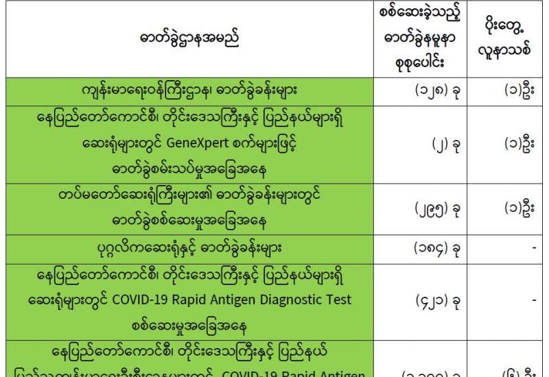 ကျန်းမာရေးဝန်ကြီးဌာနအနေဖြင့် နိုင်ငံအတွင်း ကူးစက်ဖြစ်ပွားနေသော COVID-19 ရောဂါ ကာကွယ်၊ ကုသ၊ ထိန်းချုပ်ရေးလုပ်ငန်းများကို အရှိန်အဟုန်မပြတ် ဆောင်ရွက်လျက်ရှိရာ ရောဂါထိန်းချုပ်ရေးလုပ်ငန်းများ အောင်မြင်နိုင်ရေးအတွက် ပြည်သူလူထုအနေဖြင့် ကျန်းမာရေး ဝန်ကြီးဌာနမှ ထုတ်ပြန်ထားသော COVID-19 ရောဂါကာကွယ်ထိန်းချုပ်ရေးဆိုင်ရာ စည်းကမ်းများကို စနစ်တကျ လိုက်နာဆောင်ရွက်ရန်လိုအပ်ပြီး COVID-19 ကာကွယ်ဆေး ထိုးနှံမှုခံယူခြင်းအား အထူးဂရုပြု ပူးပေါင်းဆောင်ရွက်ကြရန် လိုအပ်ပါသည်။