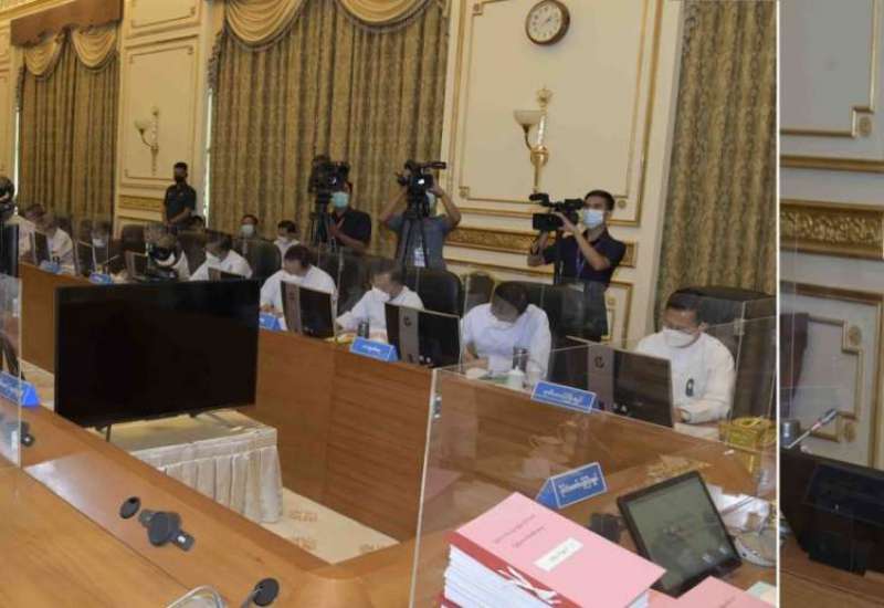 ပြည်ထောင်စုအစိုးရအဖွဲ့အစည်းအဝေး အမှတ်စဉ် (၅/၂၀၂၂)ကို ယနေ့မွန်းလွဲပိုင်းတွင် နေပြည်တော်ရှိ နိုင်ငံတော်စီမံအုပ်ချုပ်ရေးကောင်စီဥက္ကဋ္ဌရုံး အစည်းအဝေးခန်းမ၌ကျင်းပရာ နိုင်ငံတော်စီမံအုပ်ချုပ်ရေးကောင်စီဥက္ကဋ္ဌ နိုင်ငံတော်ဝန်ကြီးချုပ် ဗိုလ်ချုပ်မှူးကြီး မင်းအောင်လှိုင် တက်ရောက်အမှာစကားပြောကြားသည်။