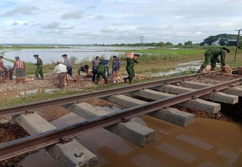 ပဲခူးတိုင်းဒေသကြီး၊ ပြည်ခရိုင်၊ သဲကုန်းမြို့နယ်အတွင်း ဇူလိုင် ၂၃ ရက် ညနေပိုင်းတွင် မိုးသည်ထန်စွာရွာသွန်းမှုကြောင့် ရန်ကုန်-ပြည် မီးရထားလမ်း မိုင်တိုင် (၁၄၁/၁၅)နှင့် (၁၄၃) ကြား၌ ရေတိုက်စားကာ ရထားလမ်း မြေပြိုပျက်စီးမှုများ ဖြစ်ပေါ်ခဲ့သည်။