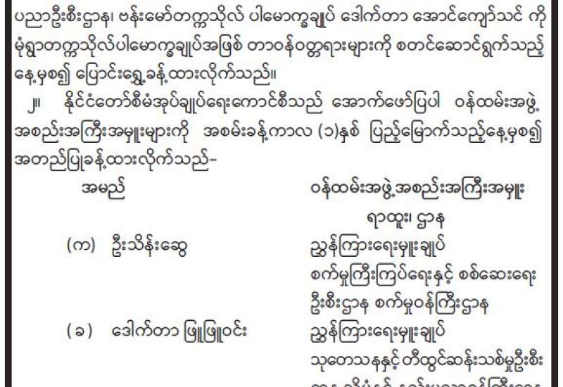 ဝန်ထမ်းအဖွဲ့အစည်းအကြီးအမှူး ပြောင်းရွှေ့ခန့်ထားခြင်းနှင့် ဝန်ထမ်းအဖွဲ့အစည်းအကြီးအမှူးများ အတည်ပြုခန့်ထားခြင်း