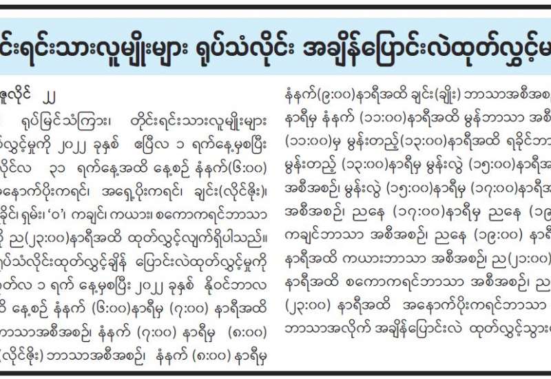 တိုင်းရင်းသားလူမျိုးများ ရုပ်သံလိုင်း အချိန်ပြောင်းလဲထုတ်လွှင့်မည်