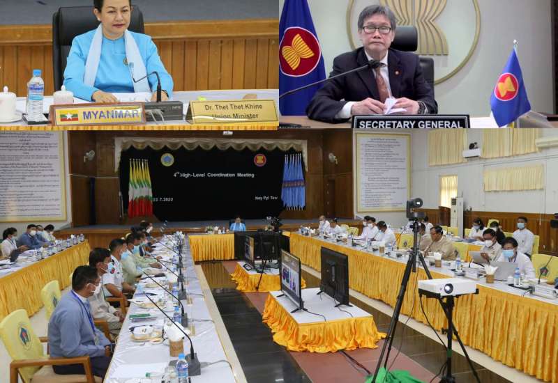 လူမှုဝန်ထမ်း၊ ကယ်ဆယ်ရေးနှင့် ပြန်လည်နေရာချထားရေးဝန်ကြီးဌာနနှင့် အာဆီယံအတွင်းရေးမှူး ချုပ်ရုံးတို့၏ စတုတ္ထအကြိမ် အဆင့်မြင့်ညှိနှိုင်းအစည်းအဝေးကို ယနေ့နံနက်ပိုင်းတွင် လူမှုဝန်ထမ်း၊ ကယ်ဆယ်ရေးနှင့် ပြန်လည်နေရာချထားရေးဝန်ကြီးဌာန၌ ကျင်းပသည်။