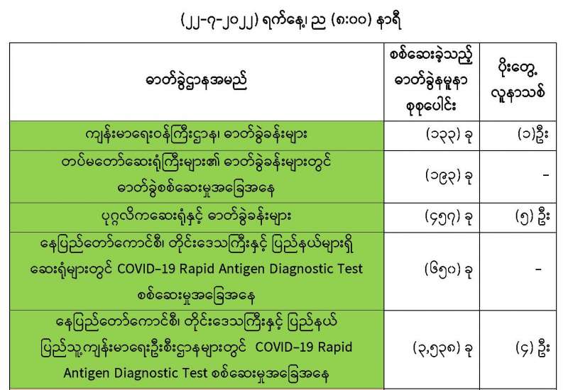 COVID-19 ရောဂါစောင့်ကြပ်ကြည့်ရှုမှုနှင့်ပတ်သက်၍ သတင်းထုတ်ပြန်ခြင်း (၂၂-၇-၂၀၂၂) ရက်နေ့၊ ည (၈:၀၀) နာရီ