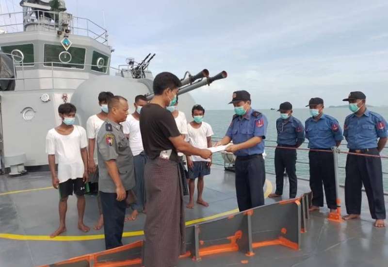 ရခိုင်ပြည်နယ်၊ သံတွဲမြို့နယ်ရှိ မြန်မာ့ပင်လယ်ပြင်အတွင်း လုံခြုံရေးဆောင်ရွက်လျက်ရှိသော တပ်မတော်စစ်ရေယာဉ်သည် ယနေ့နံနက် ၁ နာရီခန့်တွင် အပေါ်ရီကျွန်း၏ အနောက်မြောက်ဘက် ၉ မိုင်ခန့်အကွာ၌ ရေဝင်နစ်မြုပ်လျက်ရှိသော ငါးဖမ်းစက်လှေ ၁ စီးအား တွေ့ရှိသဖြင့် ကူညီကယ်ဆယ်ပေးခဲ့ကြောင်း သိရှိရသည်။