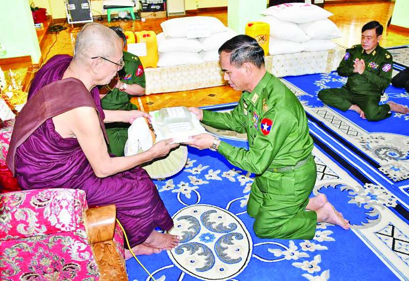 တပ်မတော်(ကြည်း၊ ရေ၊ လေ) အရာရှိ၊ စစ်သည်၊ အရာထမ်း၊ အမှုထမ်းများနှင့် စေတနာရှင်အလှူရှင်များက မြို့နယ်အသီးသီးရှိ ဘုန်းတော်ကြီးကျောင်းများ၊ သာသနာ့နွယ်ဝင် သီလရှင်ကျောင်းများနှင့် ဘာသာရေးကျောင်းများသို့ ဆွမ်းဆန်တော်၊ ဆီ၊ ဆား၊ ပဲ အမယ်လေးမျိုးနှင့် လှူဖွယ်ပစ္စည်းများ လှူဒါန်းခြင်းနှင့် နေ့ဆွမ်းများ ဆက်ကပ်လှူဒါန်းလျက်ရှိသည်။