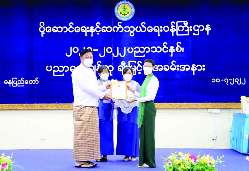 ၂၀၂၁-၂၀၂၂ ပညာသင်နှစ် တက္ကသိုလ်ဝင်စာမေးပွဲတွင် ထူးချွန်စွာအောင်မြင်ခဲ့ကြသည့် ပို့ဆောင်ရေးနှင့်ဆက်သွယ်ရေးဝန်ကြီးဌာနမှ ဝန်ထမ်းများ၏ သားငယ်သမီးငယ်၊ ကျောင်းသား ကျောင်းသူများ အား ဂုဏ်ပြုချီးမြှင့်သည့်အခမ်းအနားကို ပို့ဆောင်ရေးနှင့် ဆက်သွယ်ရေးဝန်ကြီး ဌာန ရုံးအမှတ်(၂)၌ ယနေ့ နံနက် ၈ နာရီ တွင် ကျင်းပသည်။