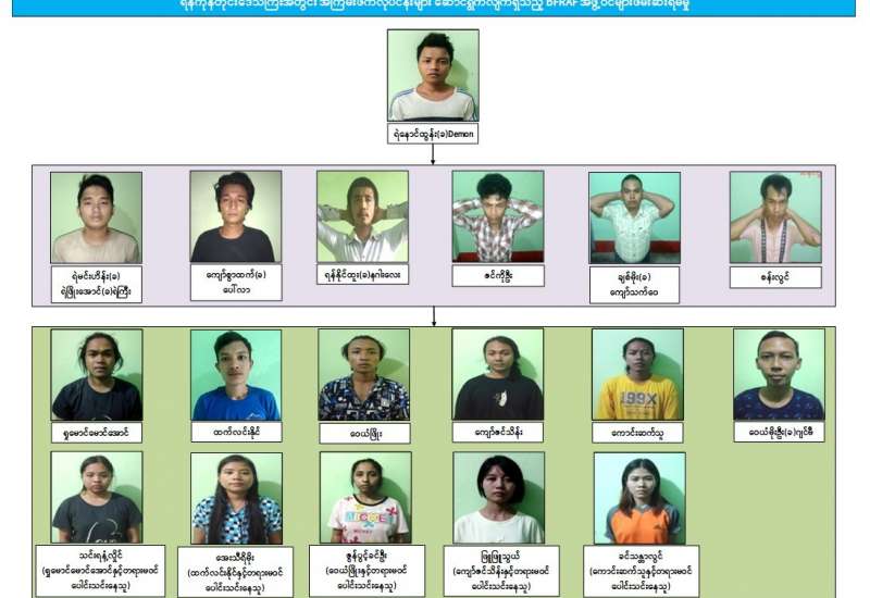 ရန်ကုန်တိုင်းဒေသကြီးအတွင်း အကြမ်းဖက်ဖောက်ခွဲဖျက်ဆီးခြင်းနှင့် အပြစ်မဲ့ပြည်သူများအား အဓိကပစ်မှတ်ထား၍ သတ်ဖြတ်ခြင်းတို့အား ဆောင်ရွက်နိုင်မှုမရှိစေရေး ဖော်ထုတ်ဖမ်းဆီးခြင်းများ ဆောင်ရွက်လျက်ရှိရာ အကြမ်းဖက်မှုအား မလိုလားသော ပြည်သူများ၏ သတင်းပေးမှုများကြောင့် ၂၀၂၂ ခုနှစ်၊ ဧပြီလ ၈ ရက်တွင် Burma Final Revolution Armed Force- BFRAF အမည်ခံ အကြမ်းဖက်အဖွဲ့ဝင် ရဲနောင်ထွန်း(ခ) Demon အား ရန်ကုန်တိုင်းဒေသကြီး၊