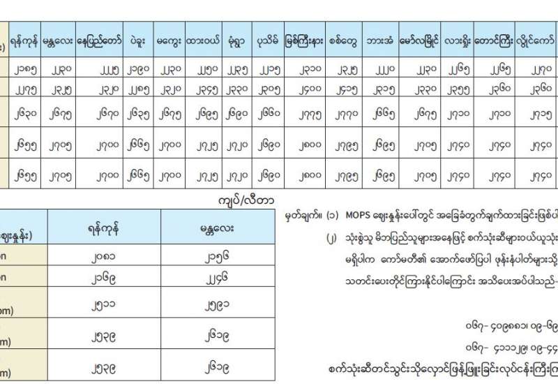 ရန်ကုန်မြို့နှင့် မန္တလေးမြို့အတွက် ရည်ညွှန်းလက်ကားဈေးနှုန်းများနှင့် ပြည်ထောင်စုနယ်မြေ နေပြည်တော်၊ တိုင်းဒေသကြီး/ပြည်နယ် မြို့တော်များအတွက် ရည်ညွှန်းလက်လီဈေးနှုန်းများ