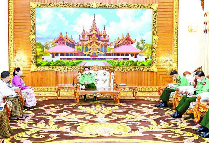 နိုင်ငံတော်စီမံအုပ်ချုပ်ရေးကောင်စီဥက္ကဋ္ဌ တပ်မတော်ကာကွယ်ရေးဦးစီးချုပ် ဗိုလ်ချုပ်မှူးကြီး မင်းအောင်လှိုင်သည် ရခိုင်ပြည်လွတ်မြောက်ရေးပါတီ ALP ဒုတိယဥက္ကဋ္ဌ ဒေါ်စောမြရာဇာလင်း ဦးဆောင်သည့် ငြိမ်းချမ်းရေးကိုယ်စားလှယ်အဖွဲ့အား ယနေ့နံနက်ပိုင်းတွင် နေပြည်တော်ရှိ ဘုရင့်နောင်ရိပ်သာ ဧည့်ခန်းမဆောင်၌တွေ့ဆုံ၍ ငြိမ်းချမ်းရေးဆိုင်ရာကိစ္စရပ်များ ဆွေးနွေးသည်။