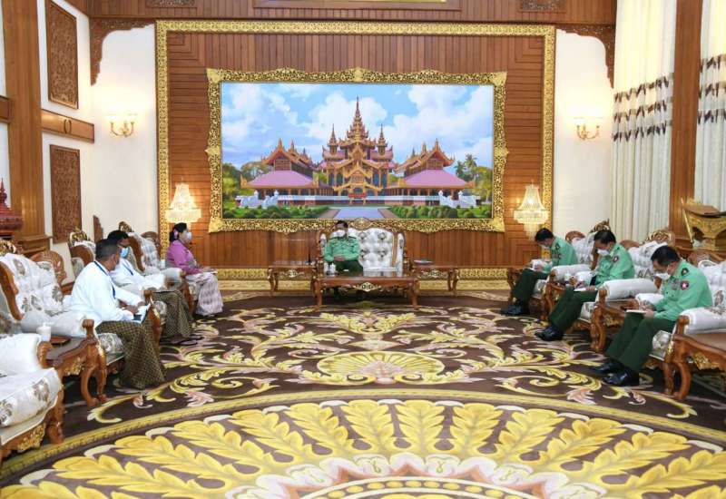 နိုင်ငံတော်စီမံအုပ်ချုပ်ရေးကောင်စီဥက္ကဋ္ဌ တပ်မတော်ကာကွယ်ရေးဦးစီးချုပ် ဗိုလ်ချုပ်မှူးကြီး မင်းအောင်လှိုင်သည် ရခိုင်ပြည်လွတ်မြောက်ရေးပါတီ ALP ဒုတိယဥက္ကဋ္ဌ ဒေါ်စောမြရာဇာလင်း ဦးဆောင်သည့် ငြိမ်းချမ်းရေးကိုယ်စားလှယ်အဖွဲ့အား ယနေ့ နံနက်ပိုင်းတွင် နေပြည်တော်ရှိ ဘုရင့်နောင်ရိပ်သာ ဧည့်ခန်းမဆောင်၌ တွေ့ဆုံ၍ ငြိမ်းချမ်းရေးဆိုင်ရာ ကိစ္စရပ်များ ဆွေးနွေးသည်။