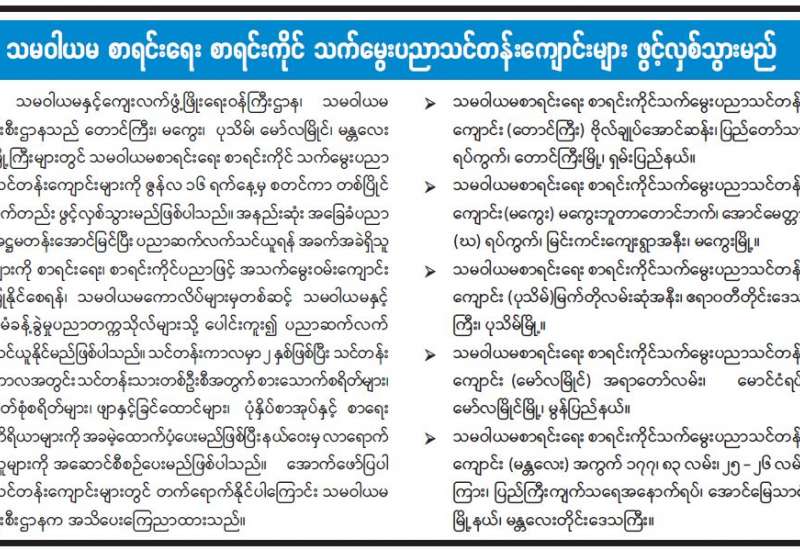 တက္ကသိုလ်၊ ကောလိပ်ဆရာ ဆရာမများ အထူးမွမ်းမံသင်တန်း အမှတ်စဉ်(၂၅)သင်တန်းဆင်းပွဲ အခမ်းအနားကို ယနေ့နံနက် ၈ နာရီတွင် ရန်ကုန်မြို့ရှိ နိုင်ငံ့ဝန်ထမ်းတက္ကသိုလ်(အောက်မြန်မာပြည်) ရတနာ သိင်္ဃခန်းမ၌ ကျင်းပသည်။