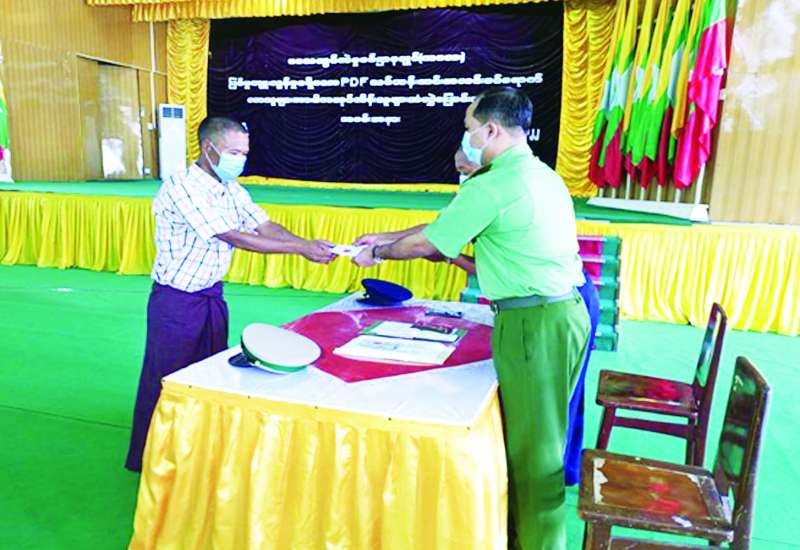 ပြစ်မှုကျူးလွန်ခြင်းမရှိဘဲ လုံခြုံရေးတပ်ဖွဲ့ဝင်များထံသို့ လာရောက်ခိုလှုံသည့် တိုင်းရင်းသား လက်နက်ကိုင်အဖွဲ့ နယ်မြေအတွင်း သင်တန်းများ တက်ရောက်ခဲ့ သည့် PDF အဖွဲ့ဝင်များအား ၎င်းတို့၏ မိဘအုပ်ထိန်းသူများထံ လွှဲပြောင်းပေးအပ်ခြင်းကို ဇွန် ၆ ရက် နံနက်ပိုင်းတွင် အနောက်မြောက်တိုင်း စစ်ဌာနချုပ် ကလေးတပ်နယ် နယ်မြေခံတပ်ရှိ အောင်ဆန်းခန်းမ၌ ပြုလုပ်ရာ ကလေးတပ်နယ်မှ ဗိုလ်မှူးချုပ် သန့်ဇင်ဦးနှင့် တပ်မတော်အရာရှိကြီးများ၊ ကလေးခရိုင် စီမံအုပ်ချုပ်ရေးအဖွဲ့ဥက္ကဋ္ဌနှင့် အဖွဲ့ဝင်များ၊ မြန်မာနိုင်ငံ ရဲတပ်ဖွဲ့ဝင်များ၊ အလင်းဝင်ရောက်လာသူများနှင့် ၎င်းတို့၏ မိဘအုပ်ထိန်းသူများ တက်ရောက်ကြသည်။