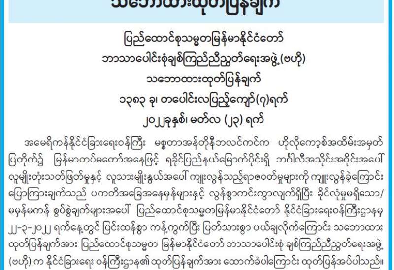 နိုင်ငံတော်စီမံအုပ်ချုပ်ရေးကောင်စီ သတင်းထုတ်ပြန်ရေး အဖွဲ့၏ (၁၂) ကြိမ်မြောက် သတင်းစာ ရှင်းလင်းပွဲကို မတ် ၂၄ ရက် မွန်းလွဲ ၁ နာရီတွင် နေပြည်တော်ရှိ ပြန်ကြားရေးဝန်ကြီးဌာန ဝန်ကြီးရုံး စုပေါင်း အစည်းအဝေးခန်းမ၌ ကျင်းပမည်ဖြစ်ရာ