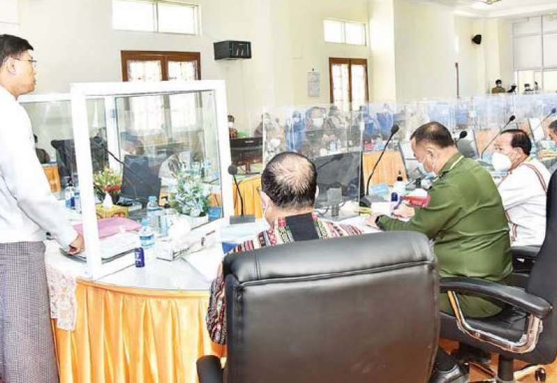 ချင်းပြည်နယ်၊ ဟားခါးမြို့၌ ရောက်ရှိနေသည့် နိုင်ငံတော်စီမံအုပ်ချုပ်ရေး ကောင်စီအဖွဲ့ဝင် ကာကွယ်ရေးဝန်ကြီးဌာန၊ ပြည်ထောင်စုဝန်ကြီး ဗိုလ်ချုပ်ကြီး မြထွန်းဦးနှင့် ဦးမောင်းဟာ တို့သည် ဖေဖော်ဝါရီ ၂၀ ရက် ညနေပိုင်းတွင် ဟားခါးမြို့ ပြည်နယ်အစိုးရအဖွဲ့ရုံး အစည်းအဝေးခန်းမ၌ ပြည်နယ်အစိုးရအဖွဲ့ဝင်များ ပြည်နယ်၊ ခရိုင်၊ မြို့နယ်အဆင့် ဌာနဆိုင်ရာတာဝန်ရှိသူများနှင့် တွေ့ဆုံသည်။
