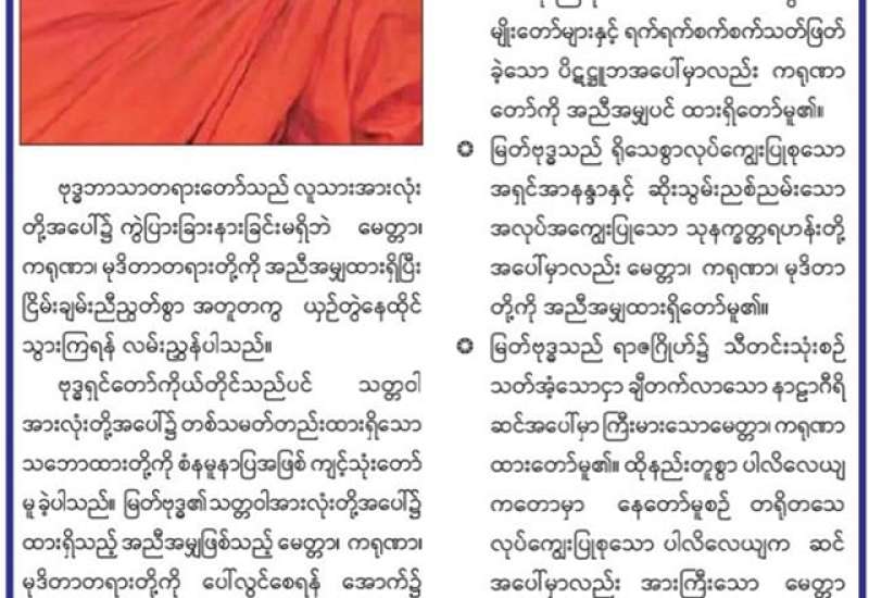 ဧရာဝတီတိုင်းဒေသကြီး အစိုးရအဖွဲ့က ကြီးမှူးကျင်းပသည့် ၂၀၂၂ ခုနှစ် နှစ်သစ်မင်္ဂလာ အသံမစဲ မဟာပဋ္ဌာန်း ရွတ်ဖတ်ပူဇော်ပွဲကို ယနေ့တွင် ပုသိမ်မြို့ရှိ သာသနာ့ဗိမာန်တော်ကြီး၌ ကျင်းပပြုလုပ်ရာ ဆရာတော် သံဃာတော်များ ကြွရောက်တော်မူကြပြီး ဧရာဝတီ တိုင်းဒေသကြီး ဝန်ကြီးချုပ် ဦးတင်မောင်ဝင်း၊ အနောက်တောင်တိုင်း စစ်ဌာနချုပ်တိုင်းမှူး ဗိုလ်ချုပ် အောင်အောင်နှင့် ဌာနဆိုင်ရာ တာဝန်ရှိသူများ၊ ဖိတ်ကြားထား သူများ တက်ရောက်ကြသည်။ ဦးစွာ ဝန်ကြီးချုပ်၊ တိုင်းမှူးနှင့် တက်ရောက်လာကြသူများက ပုသိမ်မြို့ ညောင်ပင်သာပရိယတ္တိ စာသင်တိုက် ပဓာနနာယက ဆရာတော် နိုင်ငံတော်ဩဝါဒါ စရိယ အဘိဓဇမဟာရဋ္ဌဂုရု အဂ္ဂ မဟာပဏ္ဍိတ အဂ္ဂမဟာသဒ္ဓမ္မ ဇောတိကဓဇ ဘဒ္ဒန္တ ဝိသုတထံမှ ငါးပါးသီလခံယူဆောက်တည်ကြ ပြီး ဧရာဝတီတိုင်းဒေသကြီး သံဃနာယကအဖွဲ့ဥက္ကဋ္ဌ၊ မရမ်းချိုကျောင်းတိုက် ပဓာနနာယက ဆရာတော် အဂ္ဂမဟာဂန္ထဝါစက ပဏ္ဍိတအဂ္ဂမဟာသဒ္ဓမ္မဇောတိကဓဇ ဘဒ္ဒန္တသောဘိတထံမှ ဩဝါဒကထာ နာကြားကြသည်။