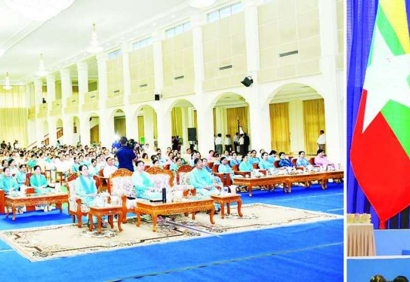 ၂၀၂၅ ခုနှစ် မြန်မာအမျိုးသမီးများနေ့အခမ်းအနားကို ယနေ့နံနက်ပိုင်းတွင် နေပြည်တော်ရှိ ဒက္ခိဏသီရိမြို့နယ် မြန်မာနိုင်ငံအမျိုးသမီးရေးရာအဖွဲ့ချုပ်ရုံး သီရိရတနာခန်းမ၌ ကျင်းပရာ နိုင်ငံတော်စီမံအုပ်ချုပ်ရေးကောင်စီဥက္ကဋ္ဌ နိုင်ငံတော်ဝန်ကြီးချုပ်၏ ဇနီး မြန်မာနိုင်ငံအမျိုးသမီးရေးရာအဖွဲ့ချုပ် ဂုဏ်ထူးဆောင်နာယက ဒေါ်ကြူကြူလှ တက်ရောက်အားပေးသည်။