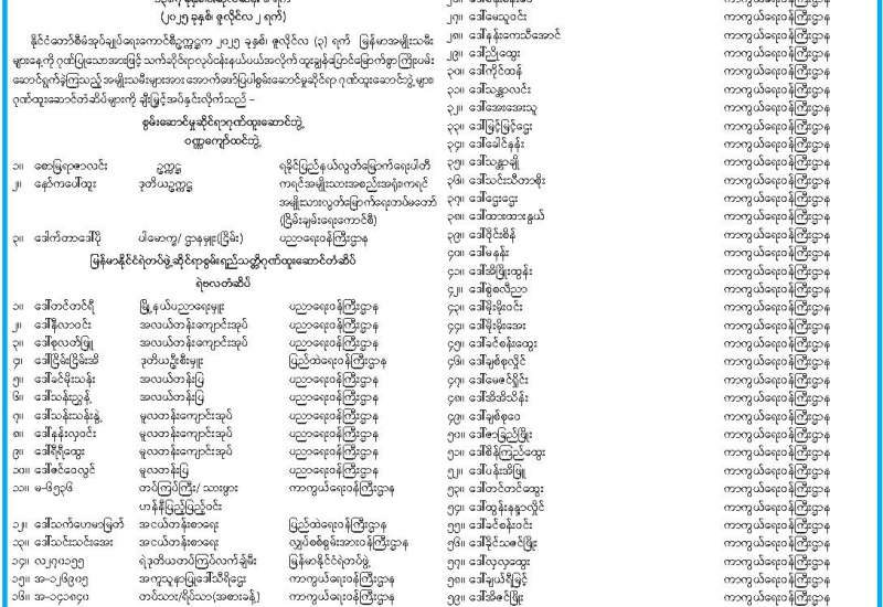 ရန်ကုန်မြို့နှင့် မန္တလေးမြို့အတွက် ရည်ညွှန်းလက်ကားဈေးနှုန်းများနှင့် ပြည်ထောင်စုနယ်မြေ နေပြည်တော်၊ တိုင်းဒေသကြီး/ပြည်နယ် မြို့တော်များအတွက် ရည်ညွှန်းလက်လီဈေးနှုန်းများ