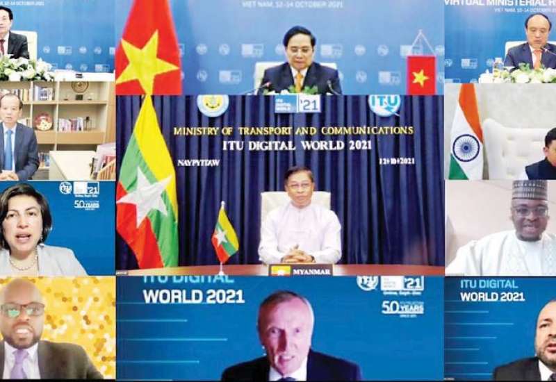 အပြည်ပြည်ဆိုင်ရာဆက်သွယ်ရေးအဖွဲ့ချုပ် (ITU) နှင့် ဗီယက်နမ်နိုင်ငံ ပြန်ကြားရေးနှင့် ဆက်သွယ်ရေးဝန်ကြီးဌာနတို့က ကြီးမှူး၍ စက်တင်ဘာ ၁ ရက်မှ နိုဝင်ဘာ ၃၀ ရက်အထိ ဗီဒီယိုကွန်ဖရင့်စနစ်ဖြင့် ကျင်းပပြုလုပ်သော “ITU Digital World 2021” အစီအစဉ်များအတွင်း ယနေ့တွင် ကျင်းပပြုလုပ်သည့် ဝန်ကြီးအဆင့် စားပွဲဝိုင်းဆွေးနွေးပွဲသို့ ပို့ဆောင်ရေးနှင့်ဆက်သွယ်ရေး ဝန်ကြီးဌာန ပြည်ထောင်စုဝန်ကြီး ဗိုလ်ချုပ်ကြီး တင်အောင်စန်း ပါဝင်တက်ရောက် ဆွေးနွေးသည်။