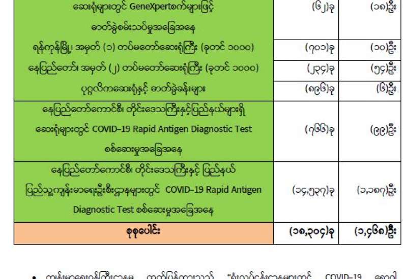 ကျန်းမာရေးဝန်ကြီးဌာနအနေဖြင့် နိုင်ငံအတွင်း ကူးစက်ဖြစ်ပွားနေသော COVID-19 ရောဂါ ကာကွယ်၊ ကုသ၊ ထိန်းချုပ်ရေး လုပ်ငန်းများကို အရှိန်အဟုန်မြှင့်ဆောင်ရွက်လျက်ရှိရာ ရောဂါ ထိန်းချုပ်ရေးလုပ်ငန်းများ အောင်မြင်နိုင်ရေးအတွက် ပြည်သူလူထု အနေဖြင့် -