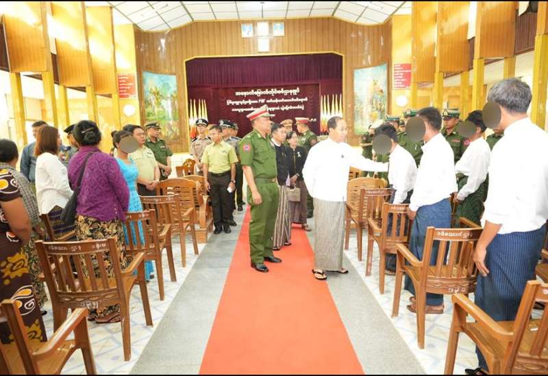 တိုင်းရင်းသားလက်နက်ကိုင်အဖွဲ့ နယ်မြေများအတွင်း သင်တန်းများတက်ရောက်ခဲ့ပြီး ပြစ်မှုကျူးလွန်ခြင်းမရှိခဲ့သည့် ဥပဒေဘောင်အတွင်းဝင်ရောက်လာသော PDF အမည်ခံ အဖွဲ့ဝင်များကို ပြန်လည်ကြိုဆိုလက်ခံ၍ မိဘအုပ်ထိန်းသူများထံ လွှဲပြောင်းပေးအပ်ခြင်းကို ယနေ့နံနက်ပိုင်းတွင် အနောက်မြောက်တိုင်းစစ်ဌာနချုပ် ဇေယျာသီရိခန်းမ၌ ပြုလုပ်ရာ တိုင်းဒေသကြီးဝန်ကြီးချုပ် ဦးမြတ်ကျော်၊ တိုင်းမှူးဗိုလ်မှူးချုပ်မျိုးမင်းထွေးနှင့် ဌာနဆိုင်ရာတာဝန်ရှိသူများ၊ ဥပဒေဘောင်အတွင်းဝင်ရောက်လာသော PDF အဖွဲ့ဝင်များနှင့် ၎င်းတို့၏ မိဘအုပ်ထိန်းသူများ တက်ရောက်ကြသည်။