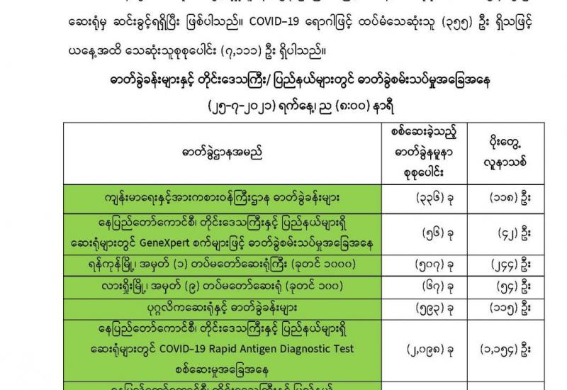 မြန်မာ့အသံနှင့်ရုပ်မြင်သံကြားမှ ဇူလိုင် ၂၄ ရက် ည ၈ နာရီ သတင်းအပြီးတွင် ထုတ်လွှင့်ပြသခဲ့သည့် ကိုဗစ်-၁၉ ရောဂါ ကာကွယ်ထိန်းချုပ်ရေးဆိုင်ရာ ဆောင်ရွက်ချက်များအကြောင်း သိကောင်းစရာ အစီအစဉ်ကို ပြည်သူများ သိရှိနိုင်ရန်အတွက် ပြန်လည် ဖော်ပြလိုက်ပါသည်။