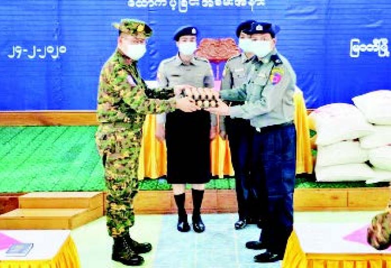 နိုင်ငံတော်နှင့် တပ်မတော်အတွက် အသက်ပေးလှူ ခဲ့ရသည့် အရာရှိစစ်သည်များ၏ မိသားစုဝင်များ၊ စစ်မှု ထမ်းဟောင်း အဖွဲ့ဝင်များနှင့် မိသားစုဝင်များ၊ ရဲမှုထမ်းဟောင်းအဖွဲ့ဝင်များ၊ ပြည်သူ့စစ်(ဌာနေ) တပ်ဖွဲ့ဝင်များနှင့် မီးသတ် တပ်ဖွဲ့ဝင်များအတွက် ကိုဗစ်-၁၉ ရောဂါ ကာကွယ်၊ ထိန်းချုပ်၊ ကုသရေး လုပ်ငန်းများ ဆောင်ရွက် နေသည့် ကာလအတွင်း သွားလာမှုကန့်သတ်ချက်များကြောင့် စားရေးအခက် အခဲမရှိစေရန် ဆန်၊ ဆီ၊ ဆား၊ ပဲ အမည် လေးမျိုးနှင့် ကိုဗစ်-၁၉ ရောဂါကာကွယ်ရေး အထောက်အကူပြု ပစ္စည်းများကိုလည်းကောင်း၊ နိုင်ငံတော် ကာကွယ် ရေးနှင့် လုံခြုံရေးတာဝန်ထမ်းဆောင်လျက်ရှိသော တပ်မတော်သားများနှင့် မြန်မာနိုင်ငံရဲတပ်ဖွဲ့ဝင်များ အတွက် ဆေးဝါးများ၊ စားသောက်ဖွယ်ရာများနှင့် ချီးမြှင့်ငွေများကိုလည်းကောင်း သက်ဆိုင်ရာ တိုင်းစစ် ဌာန ချုပ်များ၊ စစ်မှုထမ်းဟောင်းရုံး၊ အိမ်ရာများ၊ တပ်နယ်ခန်းမများ၊ ရဲတပ်ဖွဲ့မှူးရုံးများနှင့် သက်ဆိုင် ရာ ရဲစခန်းများ၌ ပေးအပ်လျက်ရှိသည်။