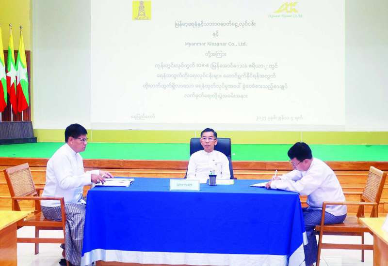 စွမ်းအင်ဝန်ကြီးဌာန မြန်မာ့ရေနံနှင့်သဘာဝဓာတ်ငွေ့လုပ်ငန်းနှင့် Myanmar Kinsanar Co.,Ltd. တို့အကြား ကုန်းတွင်းလုပ်ကွက် IOR-6 (မြန်အောင်ဒေသ) ဧရိယာ-၂ တွင် ရေနံအထွက်တိုးရေးလုပ်ငန်းများ ဆောင်ရွက်နိုင်ရန်အတွက် တိုးတက်ထွက်ရှိလာသော ရေနံထုတ်လုပ်မှုအပေါ် ခွဲဝေခံစားသည့် စာချုပ်လက်မှတ်ရေးထိုးပွဲအခမ်းအနားကို စွမ်းအင်ဝန်ကြီးဌာန နေပြည်တော်တွင် ယနေ့နံနက်ပိုင်းကကျင်းပရာ ပြည်ထောင်စုဝန်ကြီး၊ ဒုတိယဝန်ကြီး၊ ပြည်ထောင်စုဝန်ကြီး ရုံးညွှန်ကြားရေးမှူးချုပ်၊ ဦးစီးဌာန/လုပ်ငန်းများမှ ညွှန်ကြားရေးမှူးချုပ်များ၊ ဦးဆောင်ညွှန်ကြားရေးမှူးများ၊ ဌာနဆိုင်ရာအကြီးအကဲများနှင့် Myanmar Kinsanar Co.,Ltd. မှ တာဝန်ရှိသူများ တက်ရောက်သည်။