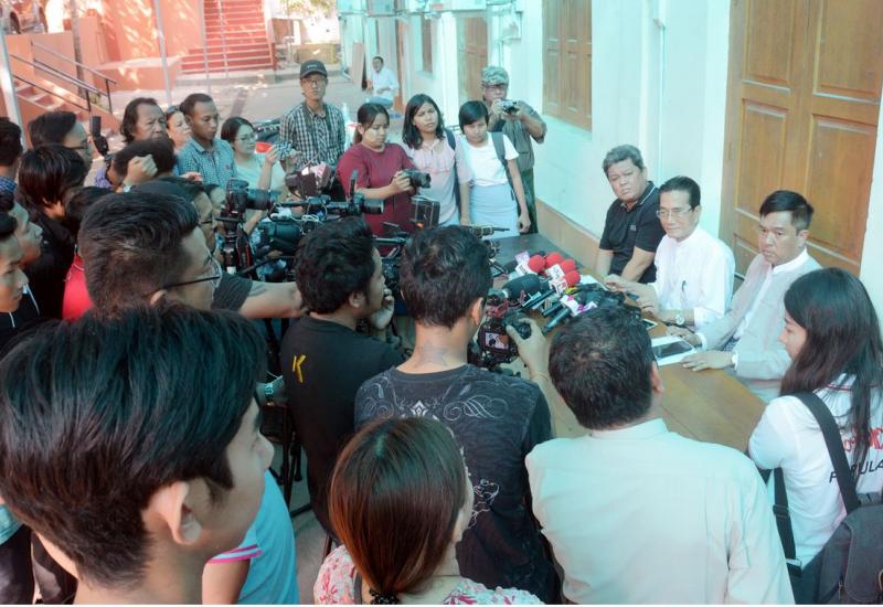 ဆွေးနွေးညှိနှိုင်းပွဲအပြီးတွင် မြန်မာနိုင်ငံ ရုပ်ရှင်အစည်းအရုံးနာယက ဒါရိုက်တာ ပန်းချီဦးစိုးမိုး၊ Paradiso Ciremas Co.,Ltd မှ CEO ဦးတင်မောင်ဝင်းနှင့် ဥက္ကဋ္ဌ ဦးလွင်မိုးတို့က စာနယ်ဇင်း ရှင်းလင်းပွဲကို ဆက်လက်ကျင်းပခဲ့သည်။
